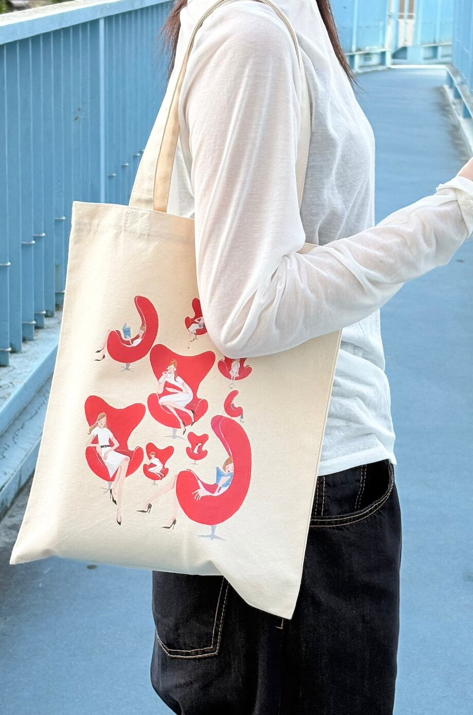 オリジナルイラストを贅沢にプリントしました。ちょっと小ぶりで可愛いサイズのEggChair・トートバッグ!